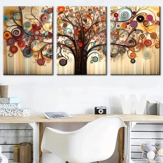 3pcs Vintage Style Tree Colorful Abstract Metal Print Ready to Hang Art