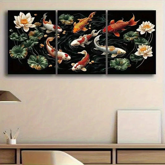 3pcs Vintage for Lotus Pattern Painting Metal Print Ready to Hang Art