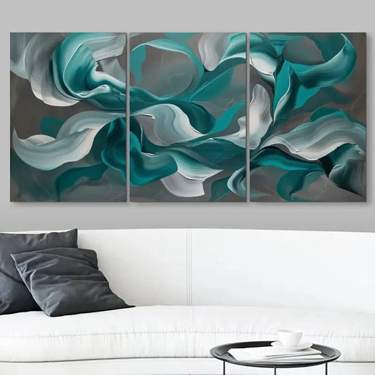 3pcs Swirling Teal & White Design Fluid Abstract Metal Print Ready to Hang Art
