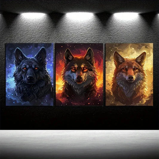 3pcs Vibrant furious Dogs Heads Illustration Metal Print Ready to Hang Art