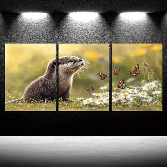 3pcs Charming Groundhog & Butterfly Design Metal Print Ready to Hang Art