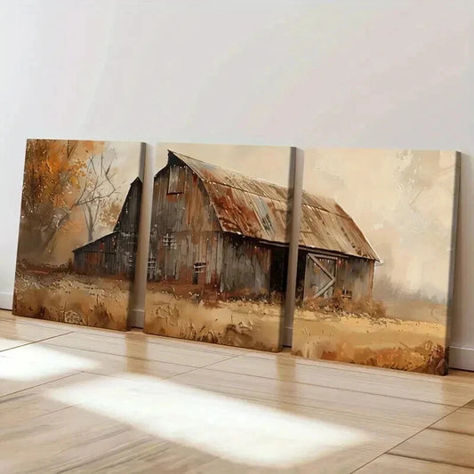 3pcs Rustic Barn Vintage Autumn Colors Wall Art Set Canvas Framed 40x60cm - High Quality Print 100% Australian Made Wall Canvas Ready to Hang
