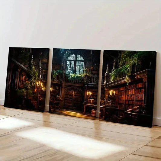 3pcs Gothic Library Bookshelves & Candles Wall Art Set Canvas Framed 40x60cm - High Quality Print 100% Australian Made Wall Canvas Ready to Hang