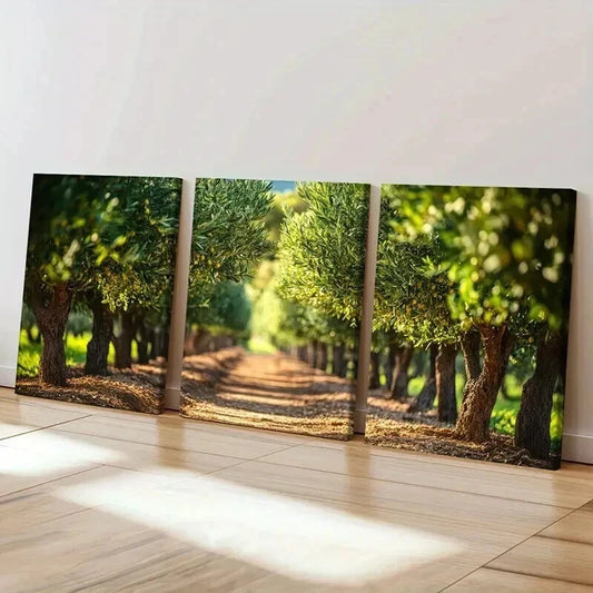 3pcs Serene Pathway Lush Greenery Warm Sunlight Wall Art Set Canvas Framed 40x60cm - High Quality Print 100% Australian Made Wall Canvas Ready to Hang