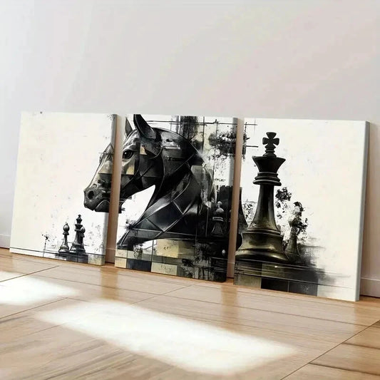 3pcs Pieces in Chess Abstract Artistic Wall Art Set Canvas Framed 40x60cm - High Quality Print 100% Australian Made Wall Canvas Ready to Hang