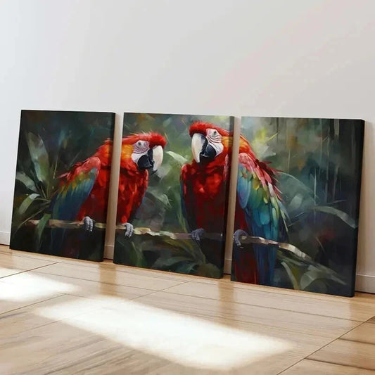 3pcs Red Macaw Birds In The Rainforest Wall Art Set Canvas Framed 40x60cm - High Quality Print 100% Australian Made Wall Canvas Ready to Hang