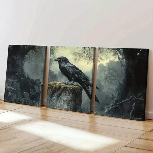 3pcs Mysterious Crow Gothic Raven Forest Wall Art Set Canvas Framed 40x60cm - High Quality Print 100% Australian Made Wall Canvas Ready to Hang