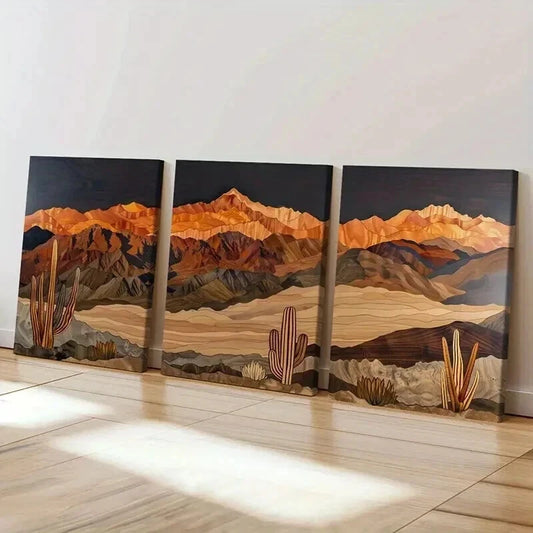 3pcs Desert Landscape Artwork Cactus Mountains Wall Art Set Canvas Framed 40x60cm - High Quality Print 100% Australian Made Wall Canvas Ready to Hang