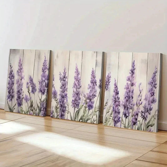 3pcs Purple Blooms Tranquil Lavender Field Wall Art Set Canvas Framed 40x60cm - High Quality Print 100% Australian Made Wall Canvas Ready to Hang
