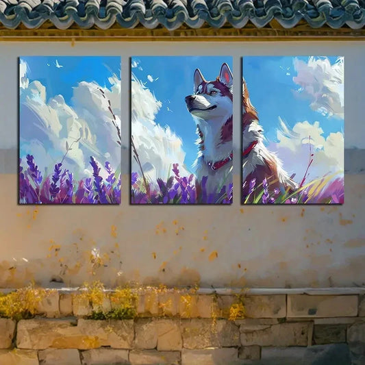 3pcs Vibrant Huskies & Floral Designs Metal Print Ready to Hang Art