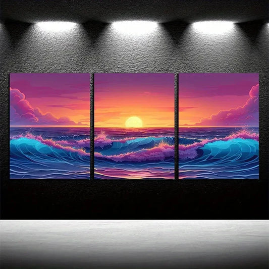 3pcs Ocean Sunset Series, Abstract Sea at Dusk Metal Print Ready to Hang Art