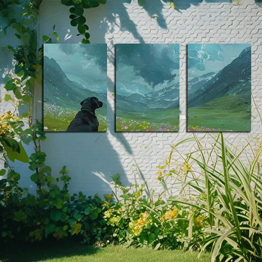 3pcs Two Dogs Sit on The Edge of Rainbow Bridge Metal Print Ready to Hang Art