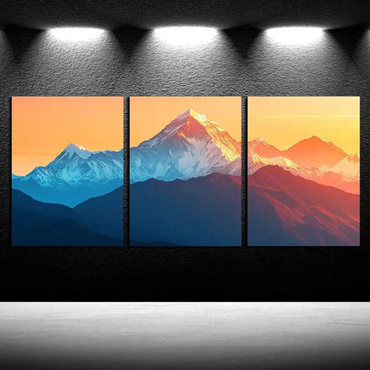 3pcs Vibrant Mountain Peak At Sunset Metal Print Ready to Hang Art