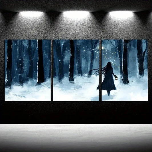 3pcs The Girl in the Forest Night Illustration Metal Print Ready to Hang Art