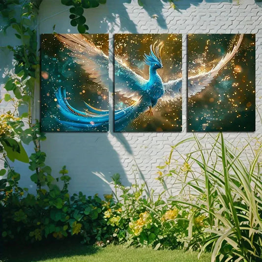 3pcs Vibrant Glowing Phoenix Illustration Metal Print Ready to Hang Art