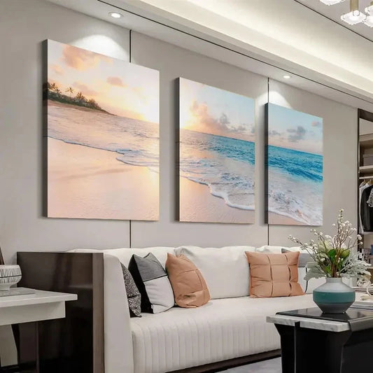 3pcs Ocean Beach Sunset Modern Deco Perfect Wall Art Set Canvas Framed 40x60cm - High Quality Print 100% Australian Made Wall Canvas Ready to Hang
