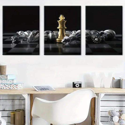 3pcs Featuring Chess And Board Games Perfect Wall Art Set Canvas Framed 40x60cm - High Quality Print 100% Australian Made Wall Canvas Ready to Hang