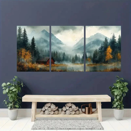 3pcs Watercolor Pine Forest Reflections Landscape Metal Print Ready to Hang Art
