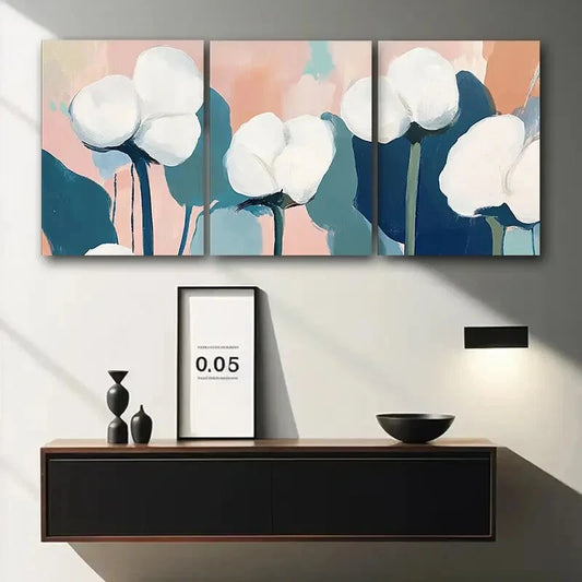 3pcs Abstract White Flowers Blue Metal Print Ready to Hang Art