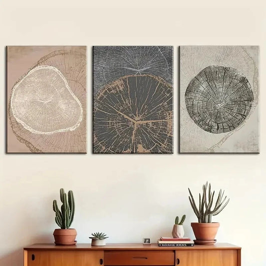 3pcs Vintage Tree Ring Décor Perfect Wall Art Set Canvas Framed 40x60cm - High Quality Print 100% Australian Made Wall Canvas Ready to Hang