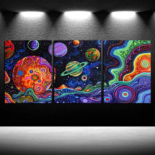 3pcs Vibrant Spiral Starry Sky and Planets Design Metal Print Ready to Hang Art