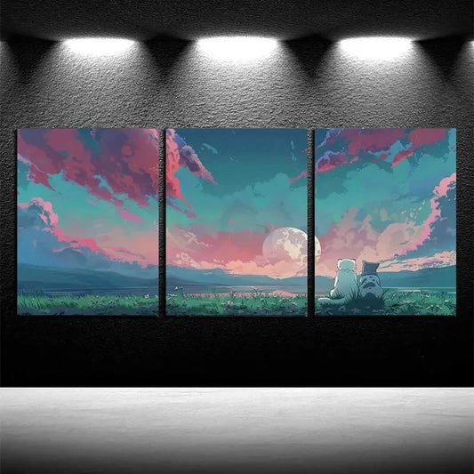 3pcs Vibrant Firefly Moonlight Metal Print Ready to Hang Art