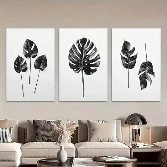 3pcs Tropical Palm Leaf Black & White Monstera Metal Print Ready to Hang Art