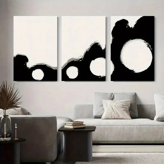 3pcs Black and White Abstract Geometric Circle Metal Print Ready to Hang Art