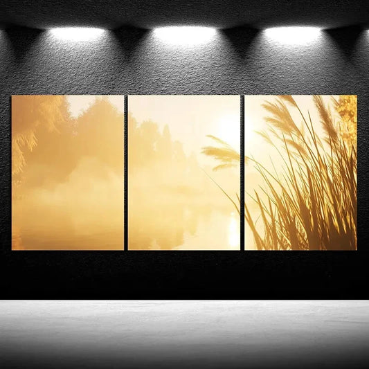 3pcs The Reeds by the Lake Scenery Metal Print Ready to Hang Art
