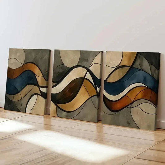 3pcs Abstract Waves Flowing Lines Wall Art Set Canvas Framed 40x60cm - High Quality Print 100% Australian Made Wall Canvas Ready to Hang