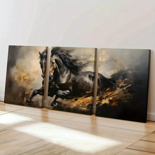 3pcs Dynamic Horse Abstract Animal Wall Art Set Canvas Framed 40x60cm - High Quality Print 100% Australian Made Wall Canvas Ready to Hang