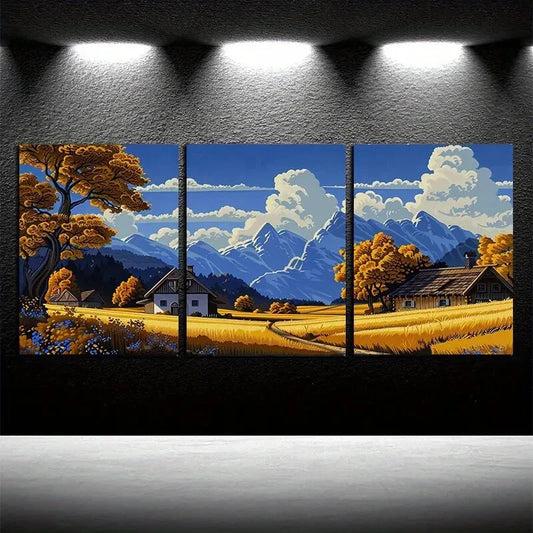 3pcs Villages Under The Mountains Metal Print Ready to Hang Art