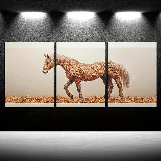 3pcs Autumn Leaf Horse Rustic Design Metal Print Ready to Hang Art