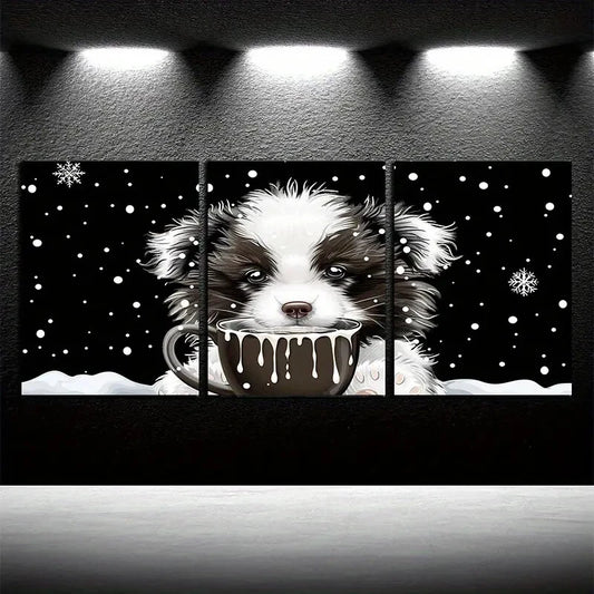 3pcs Cute Puppy with Chocolate and Milk Metal Print Ready to Hang Art
