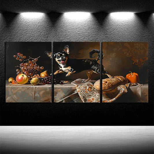 3pcs Charming Puppies & Food on the Table Metal Print Ready to Hang Art