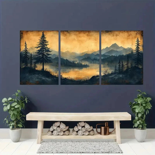 3pcs Mountain Sunset Abstract Forest & Lake Metal Print Ready to Hang Art