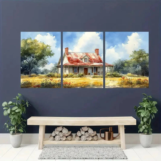 3pcs Vintage Rustic Farmhouse Metal Print Ready to Hang Art