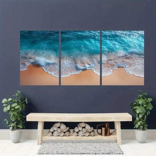 3pcs Beach Ocean Wave Seascape Oil Painting Metal Print Ready to Hang Art