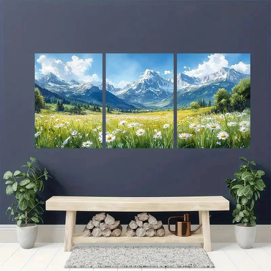 3pcs Rocky Mountains Painting Spring Watercolor Metal Print Ready to Hang Art