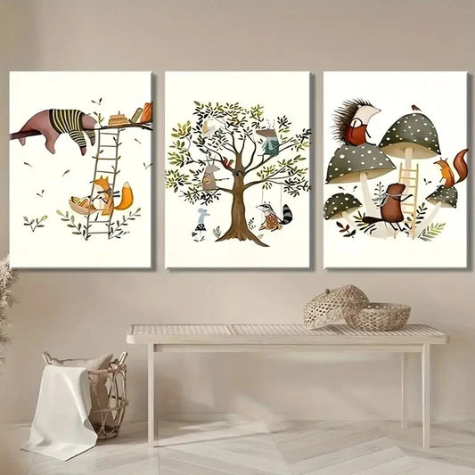 3pcs Whimsical Jungle Animal Giraffe Zebra Metal Print Ready to Hang Art