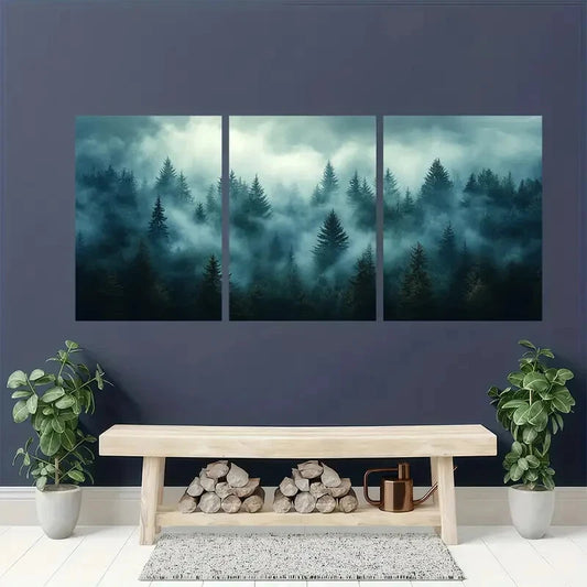 3pcs Misty Pine Forest Modern Nature Metal Print Ready to Hang Art