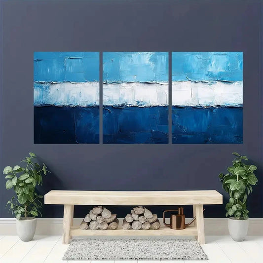 3pcs Blue and White Textured Abstract Metal Print Ready to Hang Art