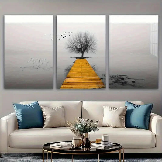3pcs Abstract Blue and Yellow Tree Metal Print Ready to Hang Art