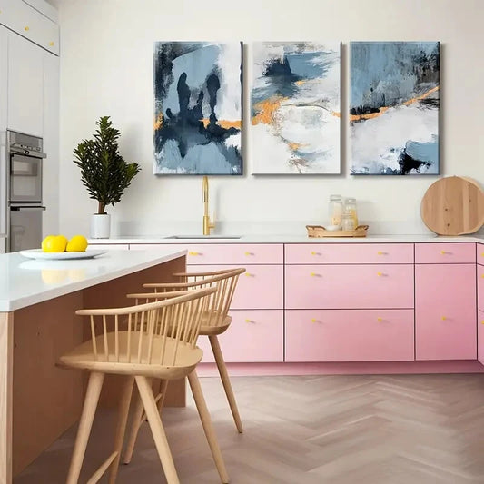 3pcs Abstract Texture Light Blue Themed Metal Print Ready to Hang Art