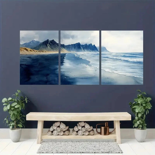3pcs Watercolor Landscape Travel Poster Metal Print Ready to Hang Art