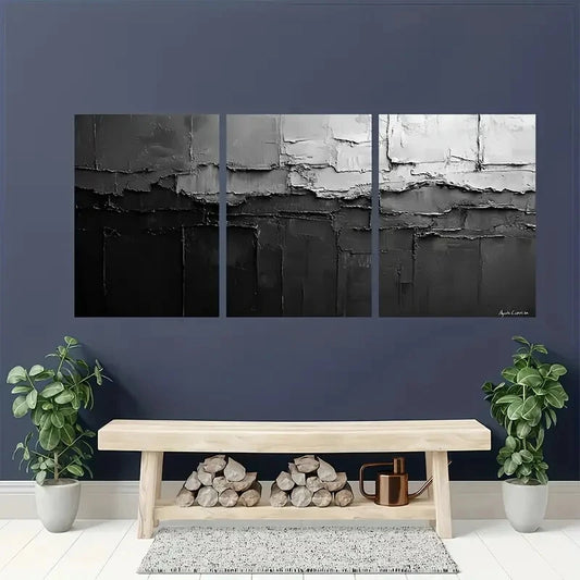 3pcs Black and White Abstract Texture Metal Print Ready to Hang Art