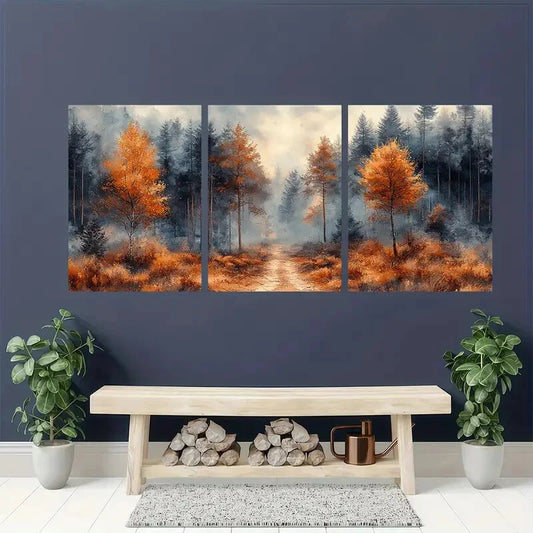 3pcs Autumn Woodland Landscape Nature Art Metal Print Ready to Hang Art