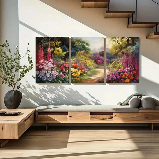 3pcs Colorful Flower Garden Watercolor Metal Print Ready to Hang Art