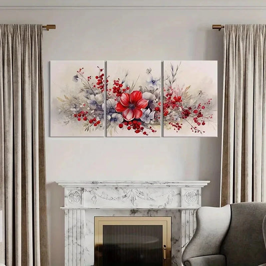 3pcs Red Flower Bouquet Abstract Floral Vibrant Metal Print Ready to Hang Art