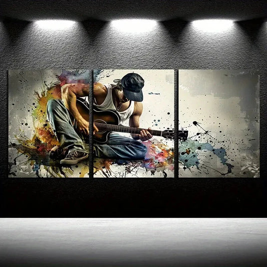 3pcs Guitarist with Color Splashes Metal Print Ready to Hang Art